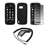 Solid Black Silicone Gel Skin Cover Case + Screen Protector + Rapid Car Charger for Nokia XpressMusic 5800