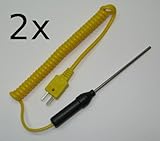 This is a small size, reliable insertion thermocouple with a K-Type sensor. The sensor is housed at the tip of a 3 inch long stainless steel probe, which comes with a 2 inch long handle. It has a miniature type connector that will work with digital K-type thermometers. This k type probe can be inserted in liquids or any object you like to measure. It is much easier to clean than the thermocouple wire that comes with many digital thermometers. The thermocouple can be used in a wide range of science, laboratory, engineering and industrial applications. The new spiral cable keeps the work space tidy and extends to full length when needed. This is a listing for a set of 2 thermocouples.