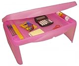 Storage Folding Lap Desk (Frosted Pink) (2.5"H x 17.5"W x 13"D) Color: Frosted Pink, Size: 2.5"H x 17.5"W x 13"D, Easy to store., Folds flat., Extra storage under the desk top., The Storage Folding Lap Desk is a portable way to work and bring everything you need with you. Lift the desk top and find lots of storage compartments for pens, paper and office supplies. The legs fold flat, making these trays easy to store and very portable. This laptop desk allows you to work anywhere more comfortably. Comes in frost blue and frost pink. Made of plastic. Assembly level/degree of difficulty: No Assembly Required.