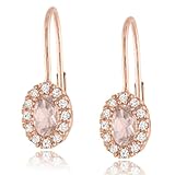 10k Rose Gold Morganite and Diamond Leverback Earrings, (0.12 cttw, G-H Color I2-I3 Clarity)
