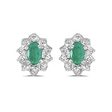 10K White Gold Oval Emerald and Diamond Earrings (.60ct tgw)