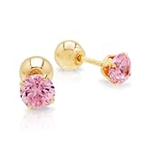 14k Yellow Gold Pink Cubic Zirconia Stud Earrings (4mm)