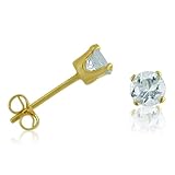 14K Yellow Gold Round Aquamarine Stud Earrings (4 mm 1/2ct tw)
