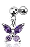 16g Cartilage Earring Piercing Stud with 5mm Purple Gem Butterfly Dangle 16 Gauge