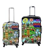 The Fazzino Spinner Case shell is made of a polycarbonate composite, and is protected by a layer of clear coat paint that gives it a high gloss luster. Modern chrome trolley handle system, with push-down locking for easy, single-hand use, and cushioned TPR grip for comfort. Air-GlideTM "Smart Wheels" are larger in the rear for greater control and smooth movement. Fazzino Collection has a fully lined interior customized to compliment the shell art, clear-view multi-use organizational pocket for ease of packing that also doubles as a divider, keeping your items secured. Built in travel sentry TSA accepted 3-digit lock, allows baggage screeners to open your luggage for inspection, and relock for your security.