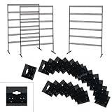 Three Earring Display Stands Plus 100 Earring Cards! Each Stand Measures 13.75 Inches Tall x 9.75 Inches Wide. Each has 6 Display Rails that will hold 24 - 2"x2" earring cards. That's a total of 72 pairs of earrings! Included are 100 - 2"x2" black flocked Earring Cards. Just what you needed to professionally display your earrings at craft fairs and consignment shops! Quantity: Three earring stands plus 100 black flocked earring cards each measuring 2"x2