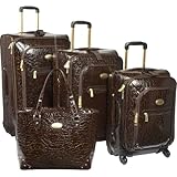 Adrienne Vittadini Shiny Croco 4 Pc Spinner Luggage Set (Brown)