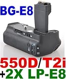 Battery Grip BG-E8 for Canon EOS 550D / Rebel T2i SLR Digital Camera + 2x LP-E8 Lithium Ion Rechargeable Batteries