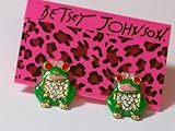 BETSEY JOHNSON "Viva la Betsey" Coqui Frog Toad Crystal & Green Enamel Earrings