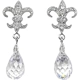 Bling by Wilkening Fleur-de-Lis Crystal Drop Earrings (Silver)