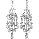 JousJous Pink Crystal Flower Explosion Dangling Earrings, 2.75" Long