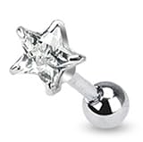 Cartilage earring piercing stud with clear cubic zirconia star. 16 Gauge 1/4". Surgical steel bar.