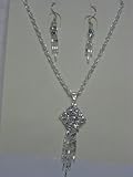 Cubic Zirconia Diamond Shaped Dangle Necklace with Matching Earrings.