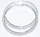 Dazzling Silver Tone 2 Row Crystals Rhinestones Hoop Earrings 60mm in Width