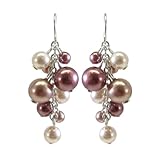Dusty Rose, Peach and Mauve Simulated Pearl Drop Earrings