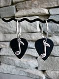 - Beautiful charms adorn this silver hoop earrings made with black Fender guitar pick