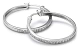 Rhodium Plated Sterling Silver Cubic Zirconia Hoop Earrings (1.2" Diameter)