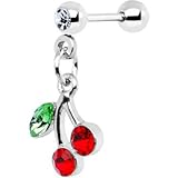 Sweet style! Cherry cartilage earring. 316L stainless steel helix piercing designed with a dangle. Quality cartilage piercing earring.. Specifications: 18 Gauge (1mm), 5/16" (8mm), 316L Surgical Grade Stainless Steel. Ruby Red Gem Cherry Dangle Cartilage Earring List Price: $ 29.99 Price: $ 9.99