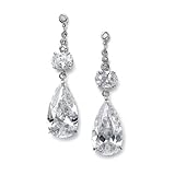 24-7 Accessories's whimsical yet classy bridal earrings are made of cubic zirconia stones in tiny bezels at the top with a distinctive elongated teardrop. These splendid linear earrings measure 1 3/4"h and are plated in rich silver rhodium.