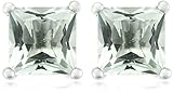 Sterling Silver 6mm Square-Cut Green Amethyst Earrings