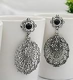 SWEETBOX Designer Floral Earrings - Black - Medium size