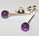 4mm Amethyst Bead Stud Earrings Crafted in SOLID  .925 Sterling Silver (not plated) 4mm =1/4 carat , Each Bead is 4mm in Diameter Standard butterfly backs, however we do include free of charge, upon request, a pair of secure, comfort "Baby Backs"!