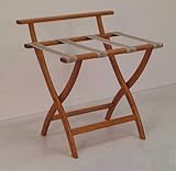 Give your master bedroom or guest room the feeling of a four star hotel with Wooden Mallet's beautiful WallSaver Luggage Rack with Tapestry Webbing. Graceful, curved legs add a designer flair. The unique "Wall Saver" feature prevents costly wall damage! Luggage rack folds flat and is easily stored in a closet or against a wall when not in use. Luggage rack has multiple uses when it doubles as a breakfast tray holder or blanket stand. Built using solid oak construction and state-of-the-art finish for heavy use and lasting beauty. Comes in Medium Oak. Â Closed Dimensions: 29.5"H x 4.5"D x 23.75"W Assembly level/degree of difficulty: No Assembly Required.