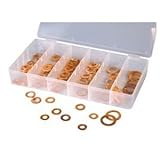 Contains 110 pieces of the most commonly used copper washers: 1/4" 30 pc, 7/16" 15 pc, 5/16" 25 pc, 1/2" 10 pc, 3/8" 20 pc, 5/8" 10 pc