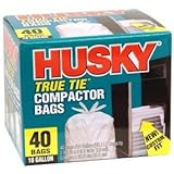 Husky HK18WC040W 18-Gallon True Tie Compactor Bags, 40 Count