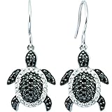 Silver Turtle Black and White Diamond Earrings (0.50 cttw, I-J Color, I2-I3 Clarity)