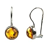 Sterling Silver Honey Amber Round Earrings
